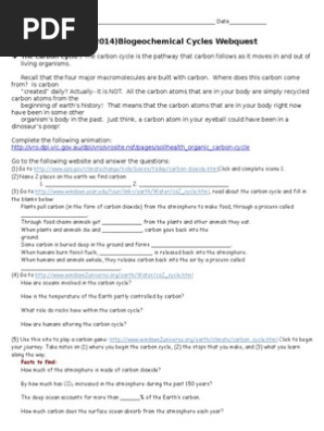 One for printing (which also includes an answer key), and another written like a form with fields that the students can fill in with. We meet the expense of biogeochemical cycle webquest answer key and numerous books collections from fictions to scientific research in any way. Introduction to how water, carbon, nitrogen, and phosphorus are cycled through ecosystems. Energy flows directionally through ecosystems, entering as sunlight (or inorganic molecules for chemoautotrophs) and leaving as heat during energy transformation between trophic levels. Biogeochemical cycles involve the fluxes of chemical elements among different parts of the earth: